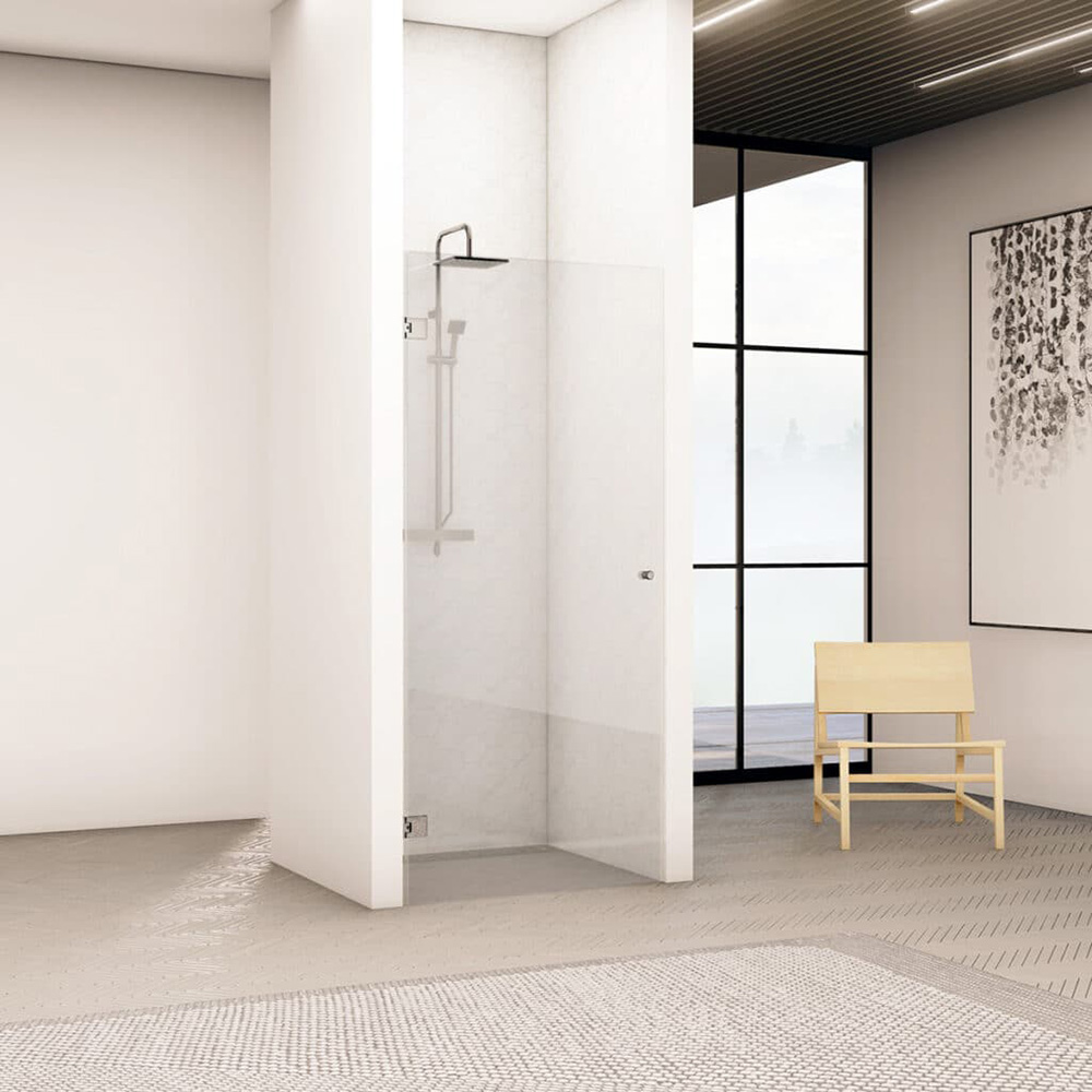 Brusedøren er en praktisk og simpel løsning for at afskærme resten dit badeværelse for vandet. Brusedøren kan bestilles i forskellige glastyper og hængsler efter ønske.