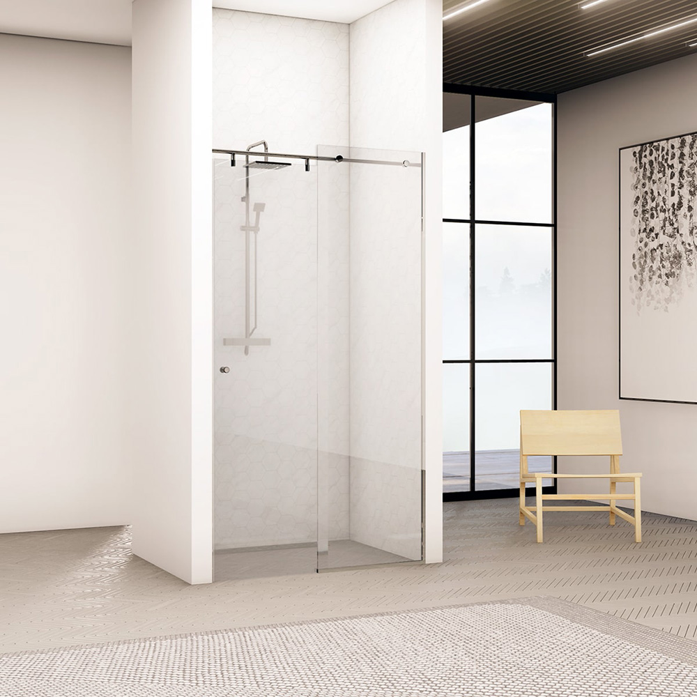 Skydedør løsningen er den svævende løsning til personen der elsker det usynlige design. Slip for at skulle finde plads til at åbne og lukke din glas brusedør.